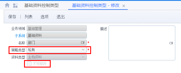 (1)从共享型→分配型/私有型:需 “不可修改” 选项未勾选,且确保该基础资料尚未录入数据;