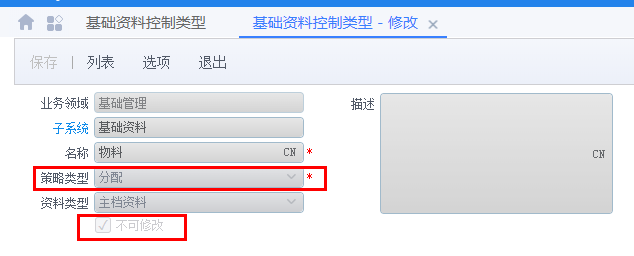 (2)从分配型→共享型/私有型:需 “不可修改” 选项未勾选,且保证该基础资料不存在分配记录;