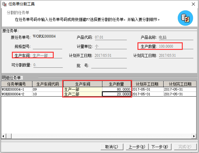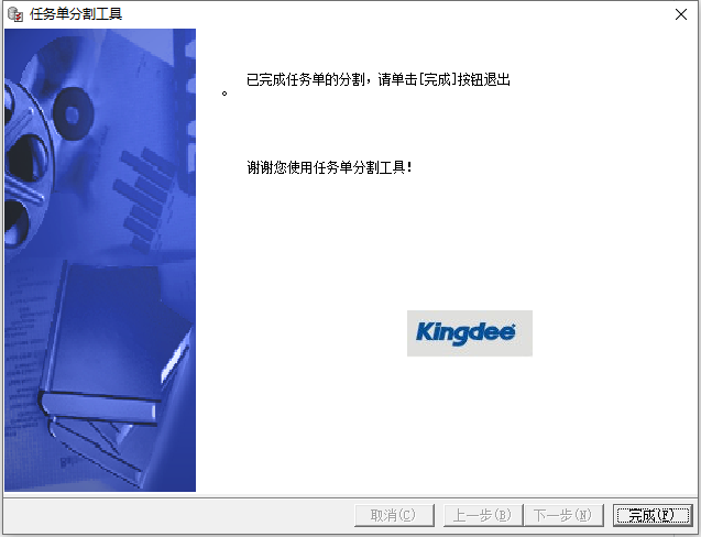 确认明细信息无误后,点击【下一步】,系统将提示“已完成任务单分割”,点击【完成】按钮即可退出分割工具。