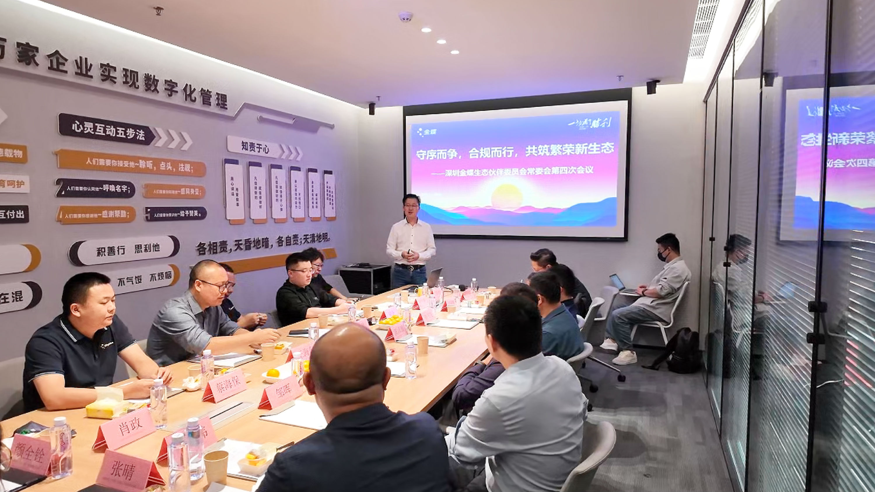 2025年11月15日,深圳金蝶生态伙伴委员会常委会第四次会议在深圳市赢方科技有限公司(以下简称“赢方科技”)顺利举行。本次会议以 “守序而争,合规而行,共筑繁荣新生态” 为核心主题,由赢方科技总经理田俊全程主持,肖政会长、陈建伟会长及深圳金蝶生态伙伴总经理齐聚一堂,围绕生态发展关键议题深入交流,凝聚协作共识。