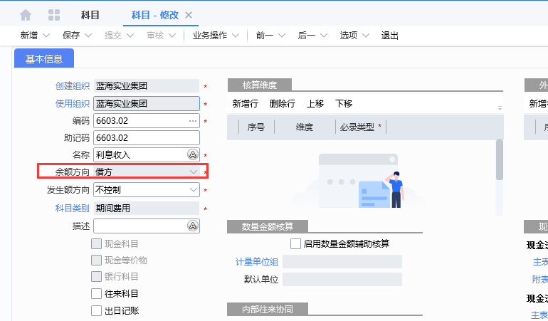 1、场景一:利息收入科目(余额方向为借方)