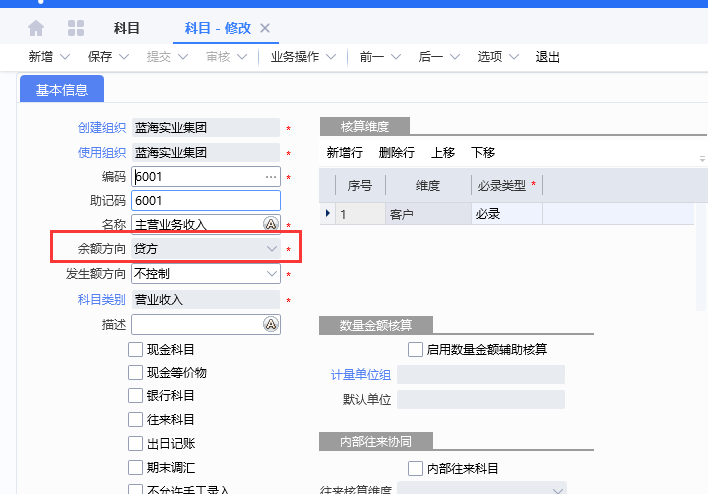 2、场景二:主营业务收入科目(余额方向为贷方)
