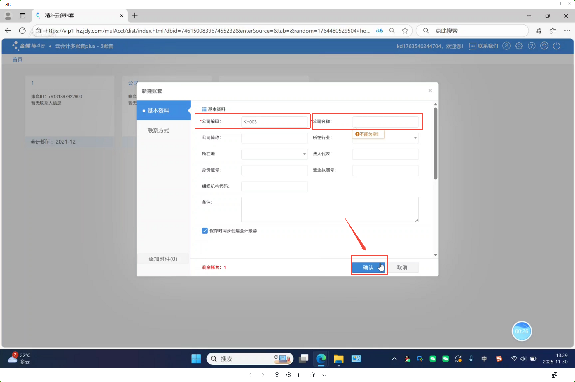 (2)输入公司编码及公全称后,点击“确认”。
