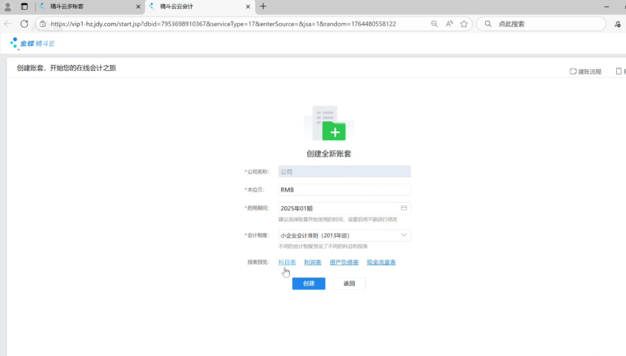 3、进入账套创建详情页