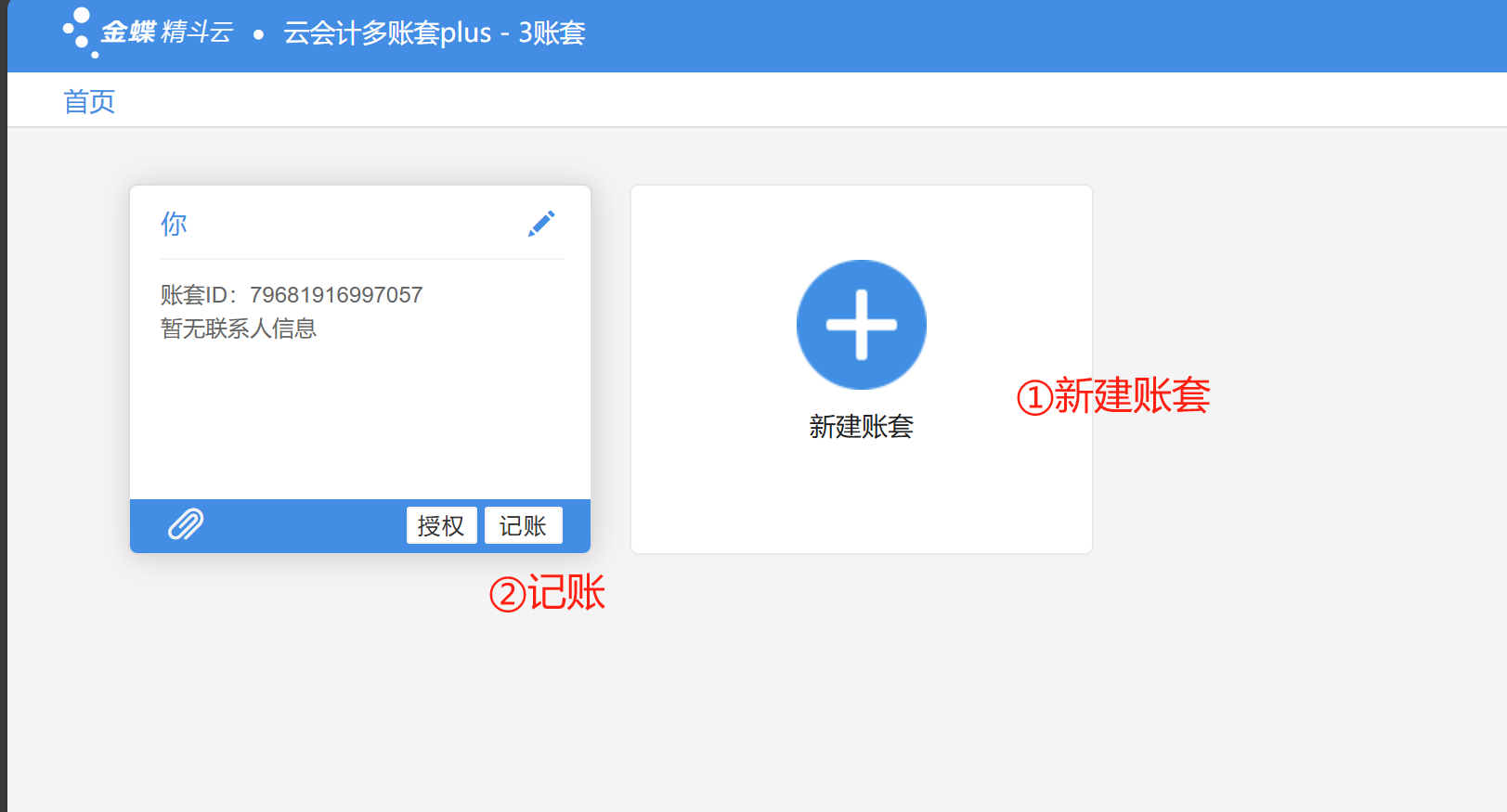 (1)点击【新建账套】功能入口;