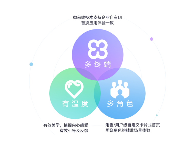 多角色:角色/用户级自定义卡片式首页,围绕角色的精准场景体验
