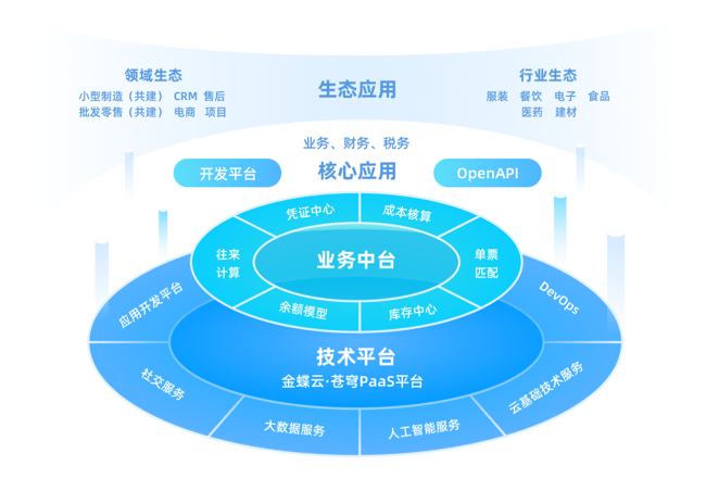 提供丰富生态应用,在开发平台及业财税核心应用API的两大能力支撑下,支持行业特性开发及异构系统集成,企业可按需灵活选购,满足多样复杂的业务需求,真正实现企业数字化融合。