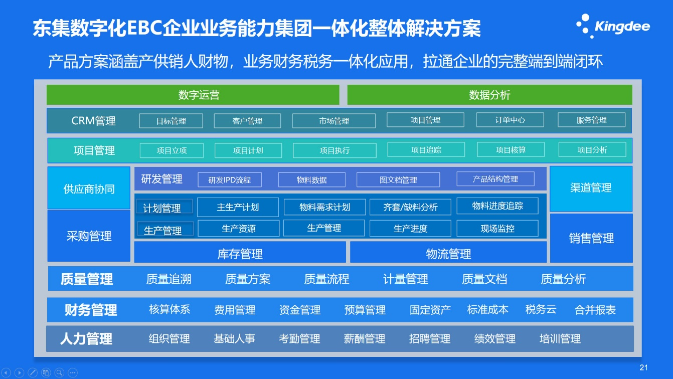 金蝶云星空研产供销财一体化,帮助东集集团重构了数据驱动的能力,实现了科学高效的成本计算过程,智能化、透明化,精细化使成本计算更准确及时,做到事前预测成本、事中控制成本,事后管理成本。支撑起东集集团实施战略与业务模式转型。