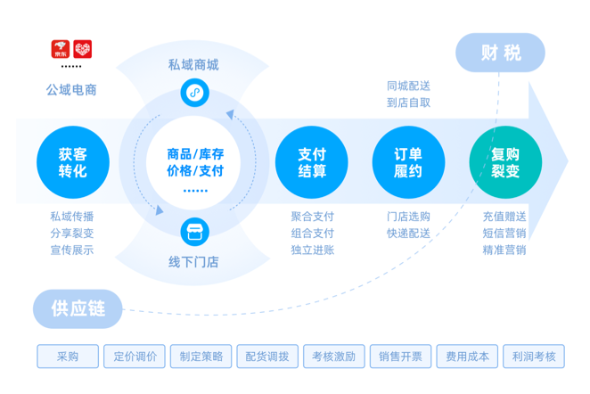 以线上线下一体化,会员全链路运营,门店数智化运营,业财一体化管理为增长引擎,让私域流量变留量,让留量变业绩增量,全方位帮助企业降低经营管理成本,提高效率与业绩。