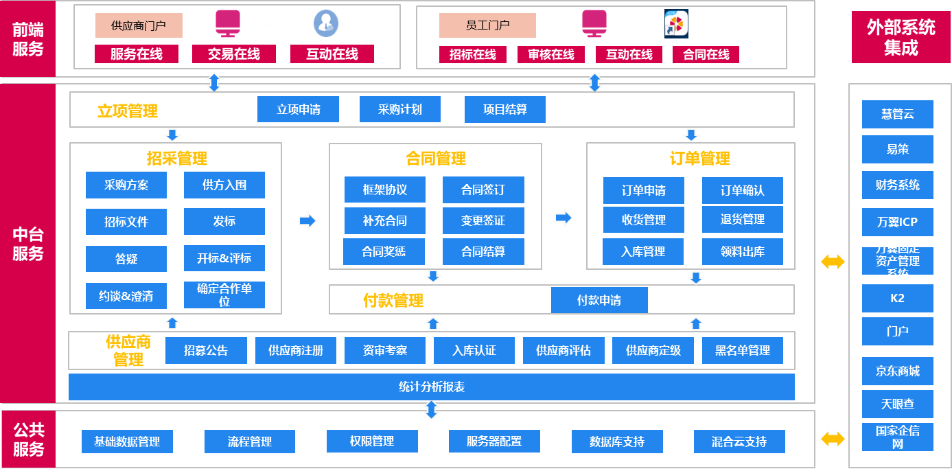3.采购招标:采购业务过程全面线上化、透明化、公开化管理,业务上下衔接