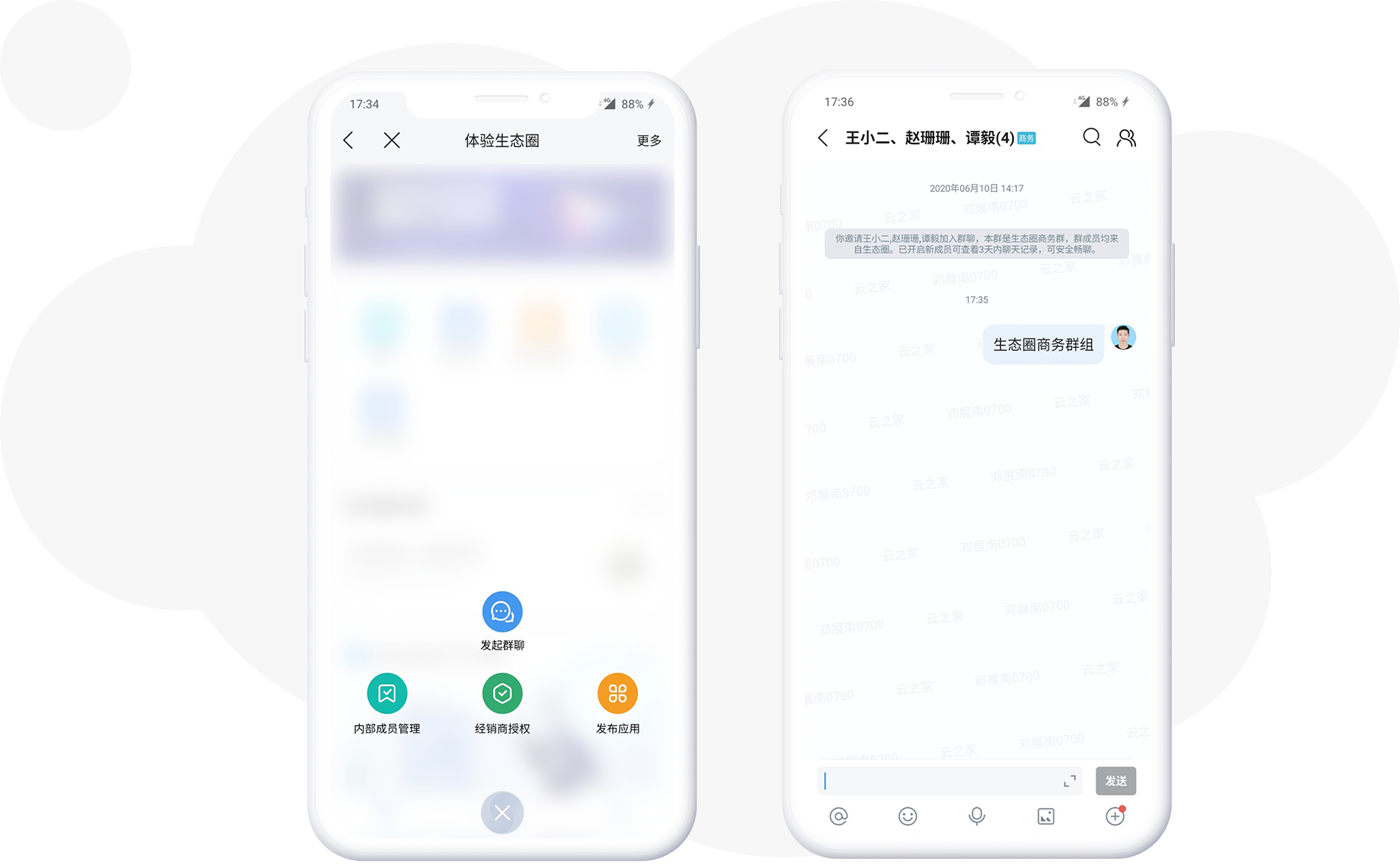 生态圈核心企业成员按照权限选择合作伙伴通讯录成员创建跨企业沟通的商务群组